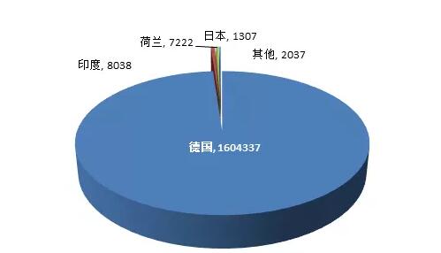 圖3? 2020年光纖用高純石英管按進(jìn)口量統(tǒng)計(jì)的國(guó)家和地區(qū)分布