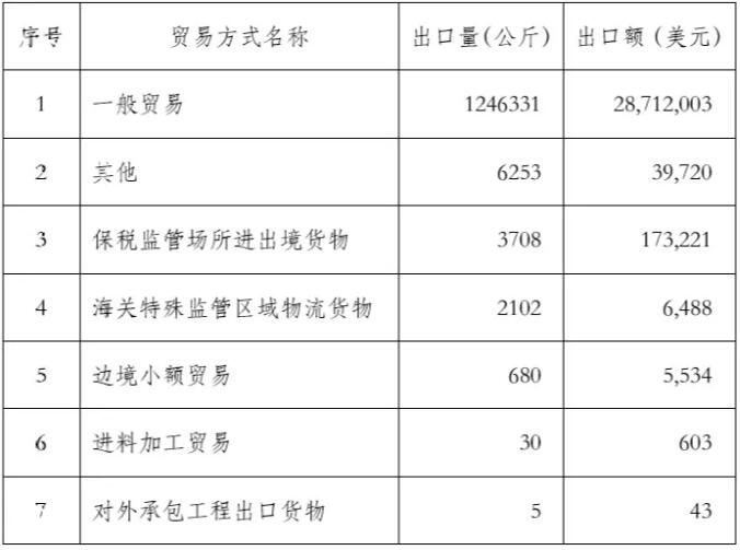 2020年,我國(guó)出口光纖用高純石英管主要是經(jīng)過(guò)一般交易的海關(guān)交易方法,占出口量比高達(dá)99%,如表3所示。